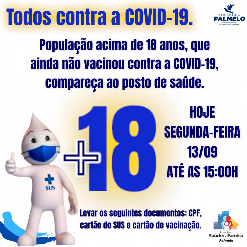 Pessoas acima de 18 anos, que ainda não se vacinaram contra a COVID 19, compareçam ao posto de saúde.