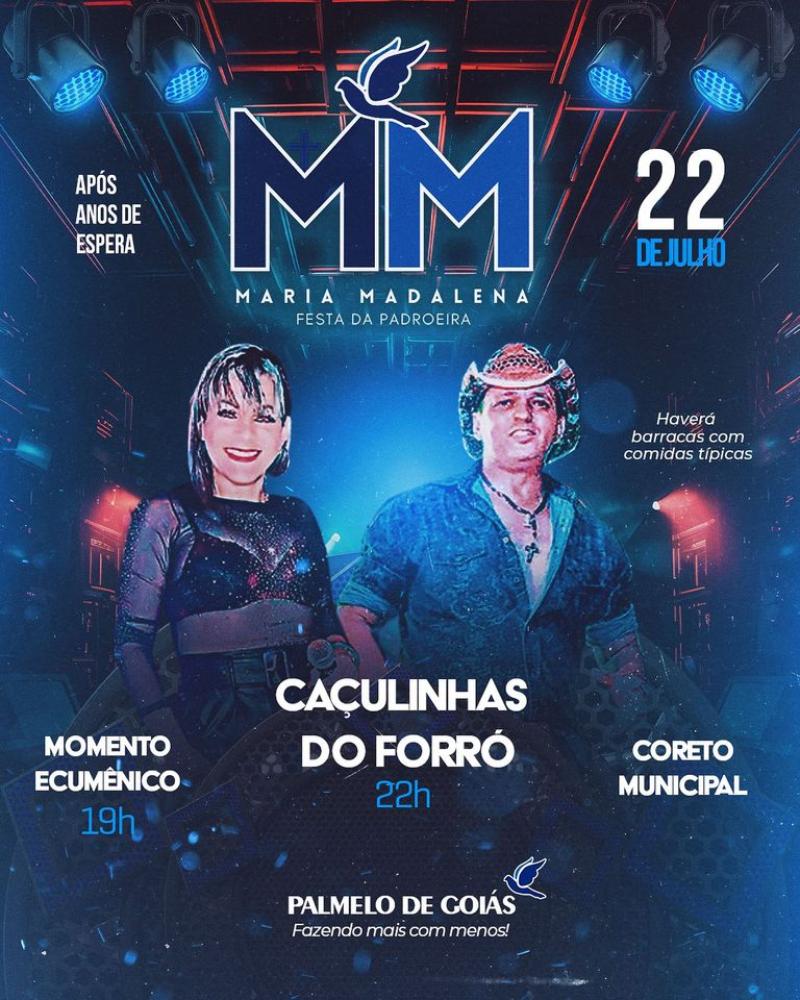 Venha celebrar conosco a tão esperada Festa da Padroeira Maria Madalena! É com grande alegria que convidamos toda a comunidade para participar desse evento especial, que ocorrerá no dia 22 no charmoso Coreto Municipal. Prepare-se para uma noite repleta de diversão, música e sabores irresistíveis.