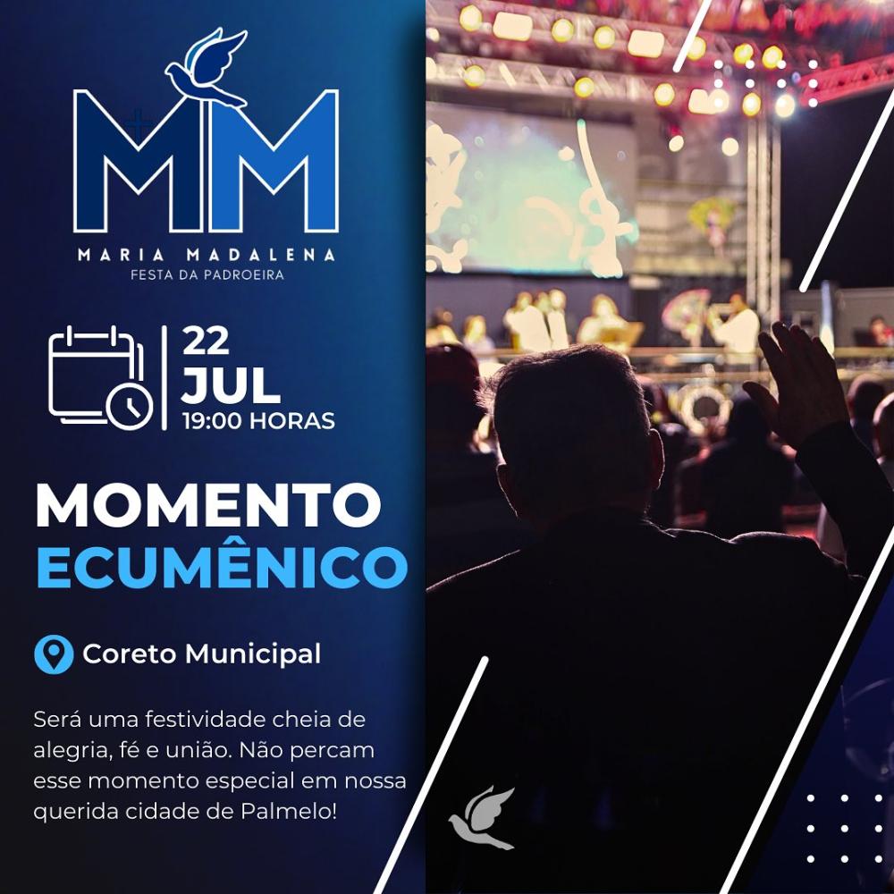 Venha participar conosco do grande Momento Ecumênico que acontecerá dia 22 na programação das festividades da Festa Padroeira Maria Madalena.