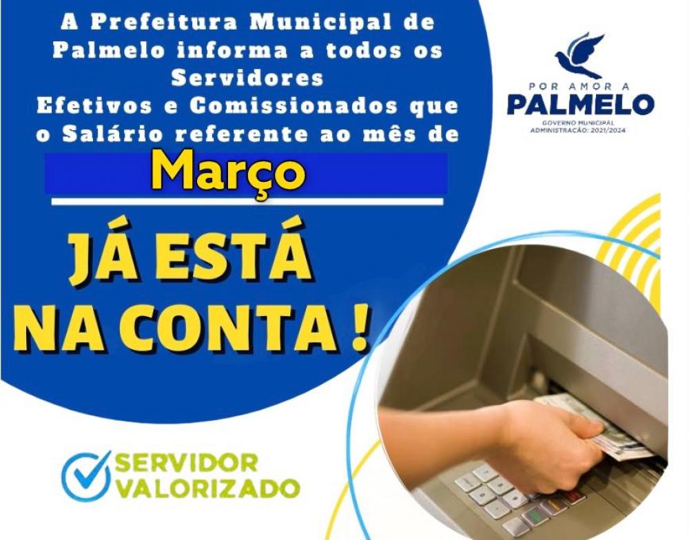 Pagamento dos Servidores Efetivos e Comissionados referente ao mês de Março.