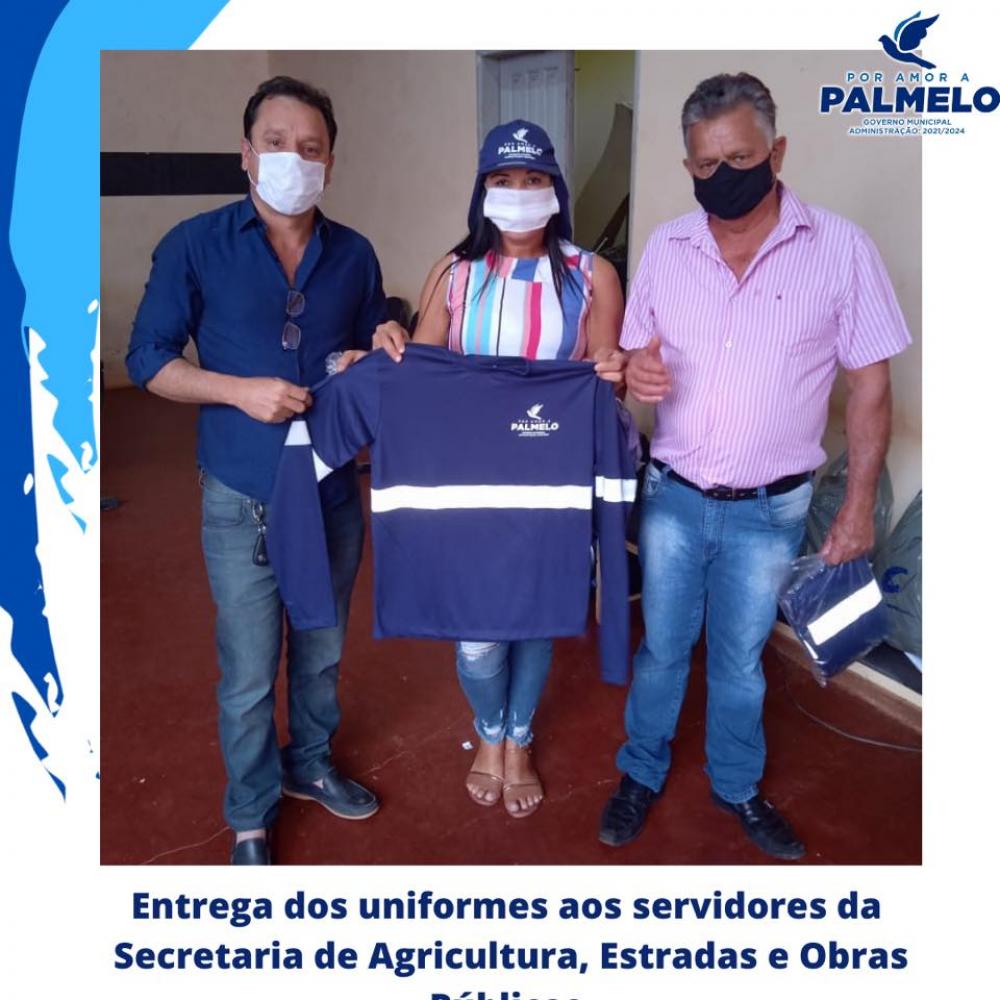 A entrega dos uniformes é uma forma de valorização e também identificação dos servidores, pois eles exercem um papel fundamental no desenvolvimento de Palmelo, desta forma, reforçamos com esta ação o nosso reconhecimento a importante função que cada um deles desempenham. São equipes que atuam nas operações "tapa-buraco", limpeza de praças, apoios nos multirões, transporte, melhorias das nossas estradas, entre outras inúmeras frentes de trabalho que vem sendo desenvolvido em Palmelo.