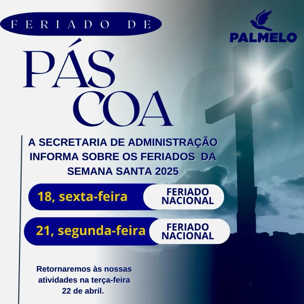 Atenção para o funcionamento dos serviços municipais durante o feriado de Páscoa e Tiradentes! Confira o calendário: