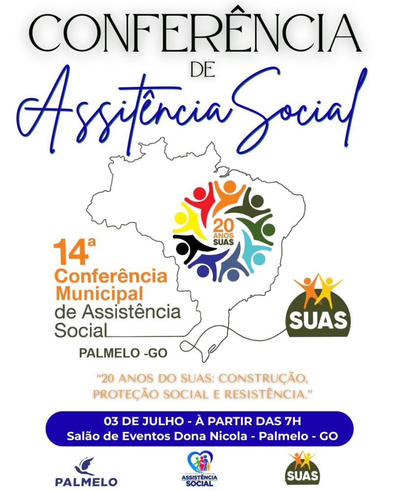 O Conselho Municipal de Assistência Social em nome da secretaria Municipal de Assistência Social - SMS, convida toda a população palmelina para participar da XIV Conferência Municipal de Assistência Social com o tema: