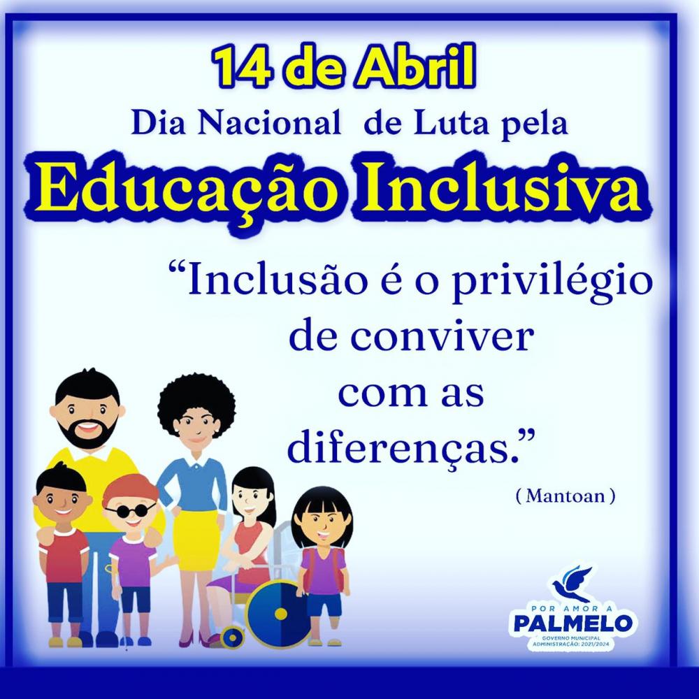 DIA NACIONAL DE LUTA PELA EDUCAÇÃO INCLUSIVA. A inclusão acontece quando... “se aprende com as diferenças e não com as igualdades..”Paulo Freire.Administração Por Amor a Palmelo 2021/2024.