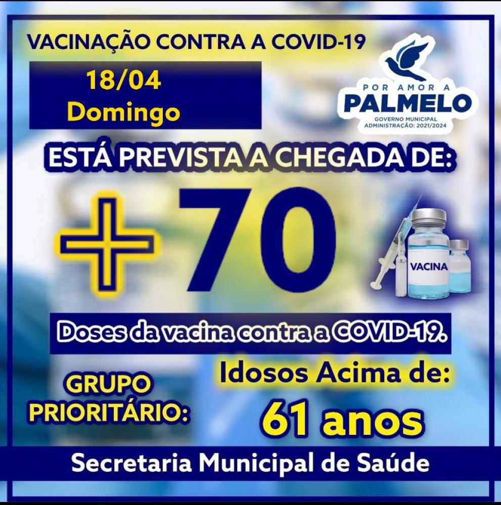 70 doses da vacina contra a COVID-19, para Palmelo.